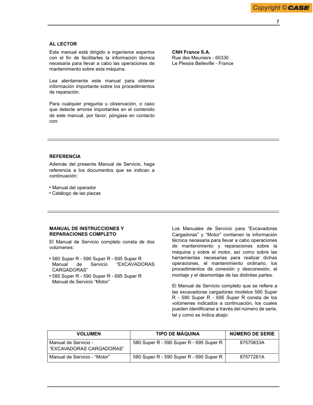 CASE 580 590 695 Super R Backhoe Loader Service Manual 87570833A
