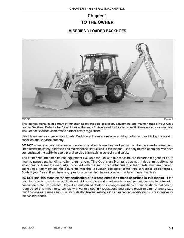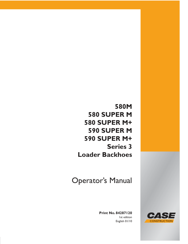 CASE 580M 580SM 580SM+ 590SM 590SM+ Series 3 2010 and after Backhoe Loader Operators Manual