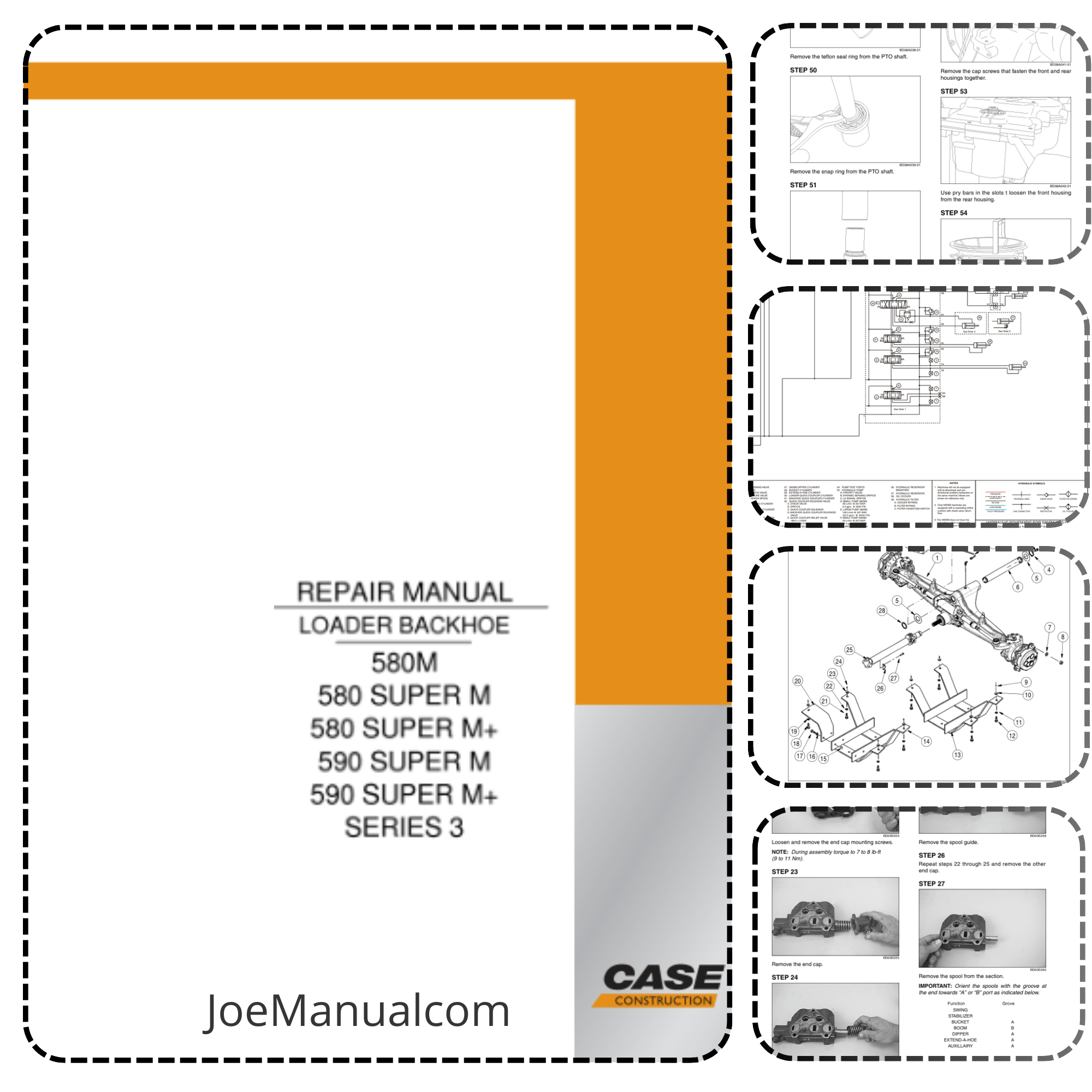 Comprehensive service manual providing detailed information on technical servicing, diagnostics, maintenance, and repairs for CASE 580M, SM, 590SM Super M Series 3 machines.