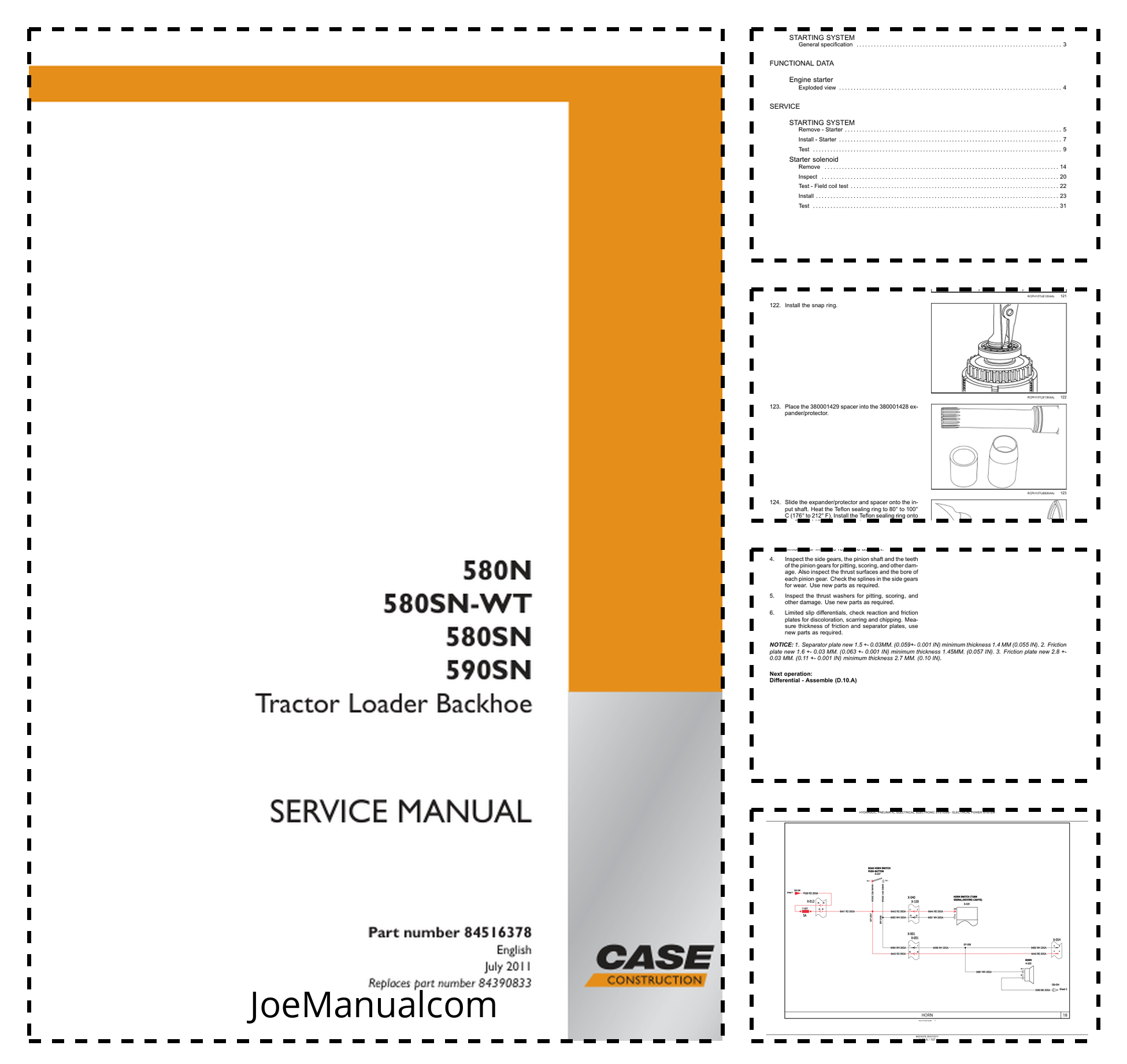 CASE 580N 580SN-WT 590SN Backhoe Loader Service Manual 84516378