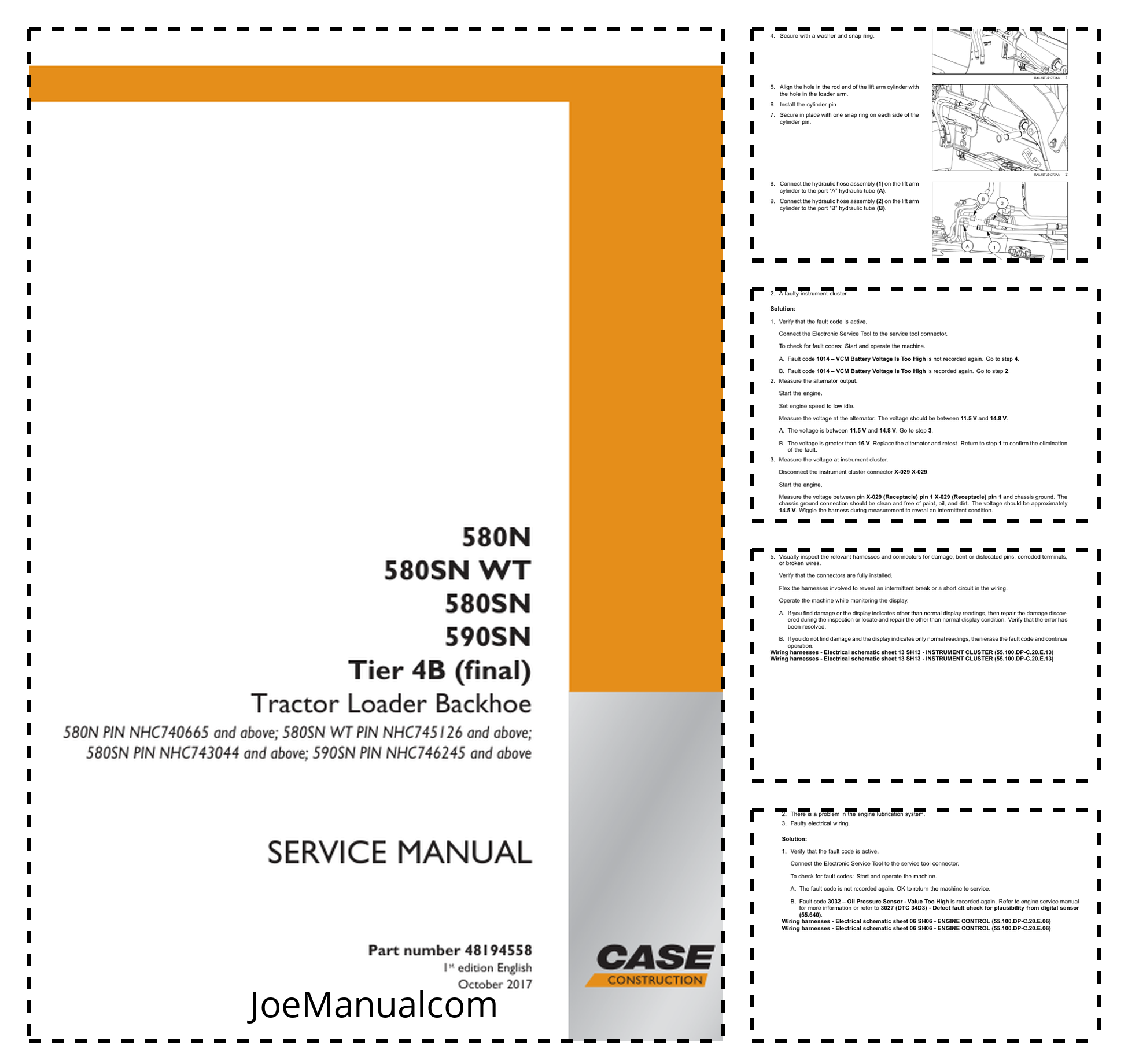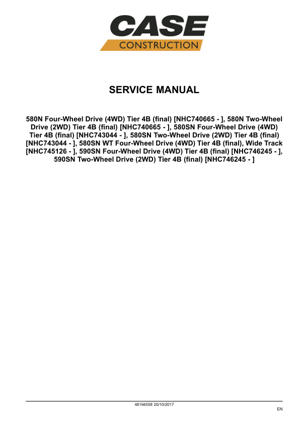 CASE 580N 580SN WT 590SN Tier 4B Backhoe Loader Service Manual PIN NHC