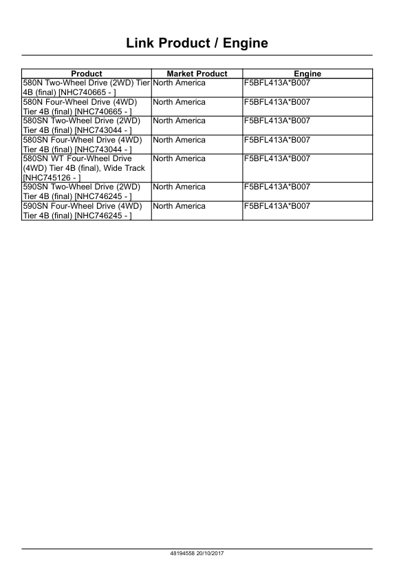 580N Two-Wheel Drive (2WD) Tier 4B (Final)