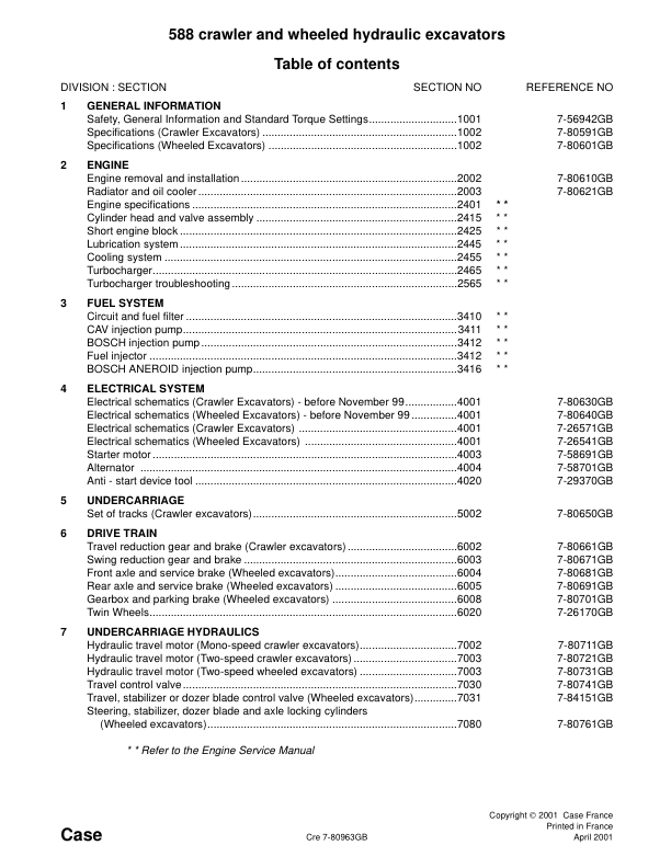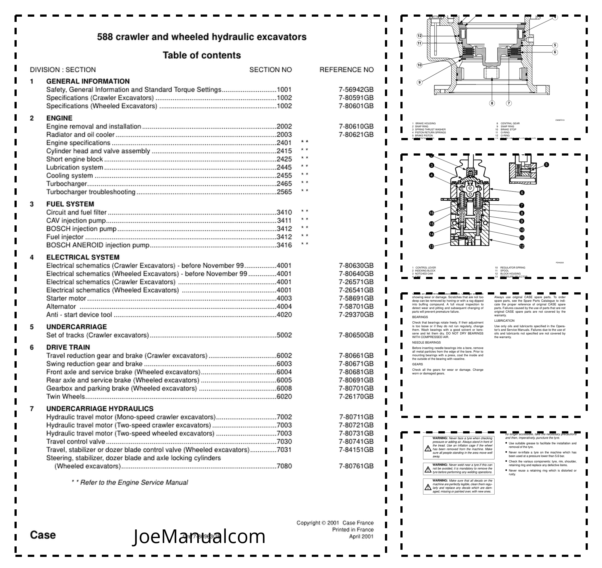 CASE 588 Crawler and Wheeled Excavators Service Manual