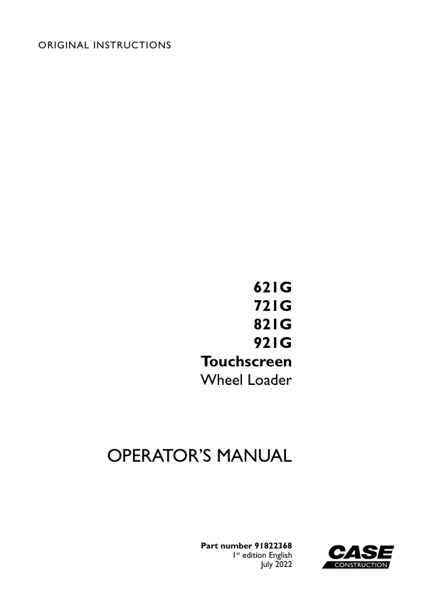 CASE 621G 721G 821G 921G Wheel Loader Operators Manual