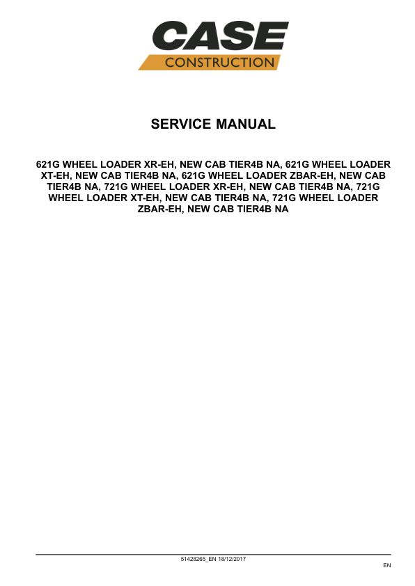 CASE 621G 721G Tier 4B Wheel Loader Service Manual