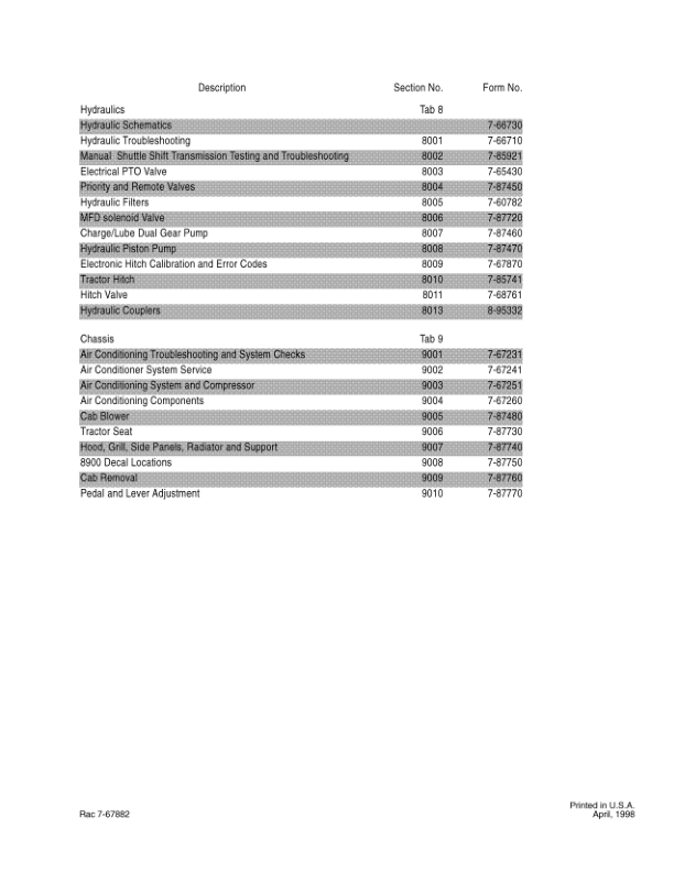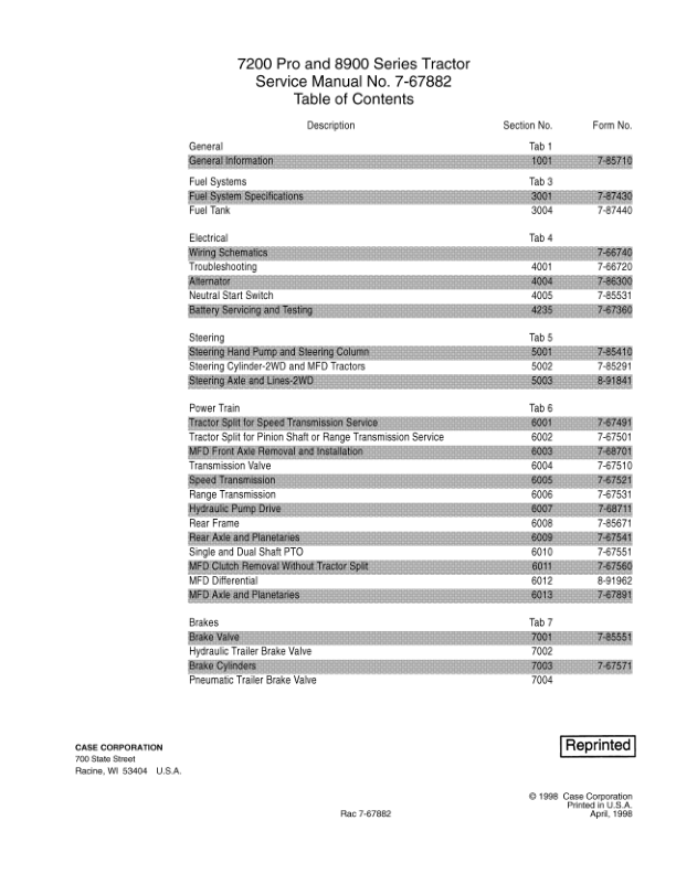 CASE 7200 Pro 8900 Series Tractor Service Manual