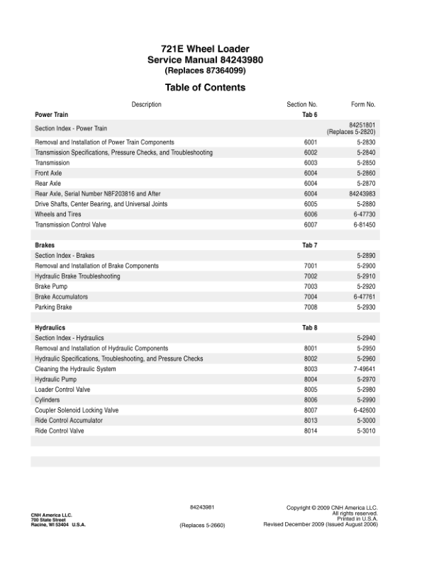 CASE 721E Tier 3 Wheel Loader Service Manual 84243980
