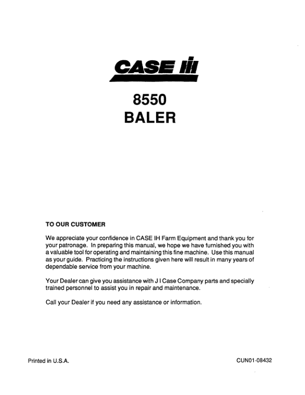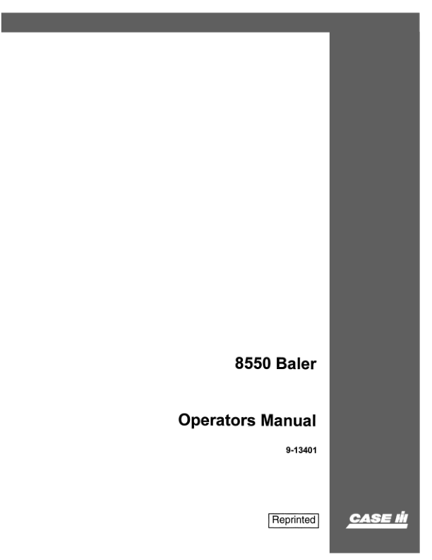 CASE 8550 Baler Operators Manual 9-13401 is an essential guide for operating and maintaining the CASE 8550 baler. This comprehensive manual provides detailed instructions and specifications to ensure safe and efficient use of the baler. It includes information on setup, operation, maintenance, and troubleshooting, making it an invaluable resource for both experienced operators and new users. The manual is designed to help users maximize the performance and longevity of their equipment, ensuring optimal results in agricultural and industrial applications.