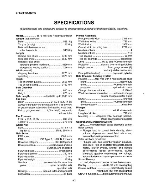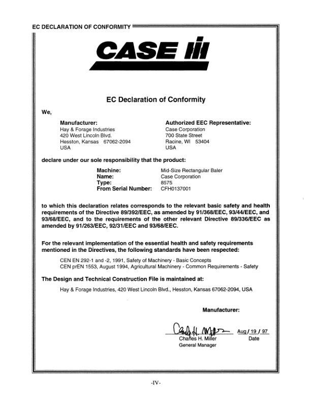 CASE 8575 Mid-Size Baler Operators Manual SN CFH0137001 and later