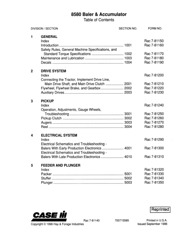 CASE 8580 Large Rectangular Baler and Bale Accumulator Service Manual 8-96141