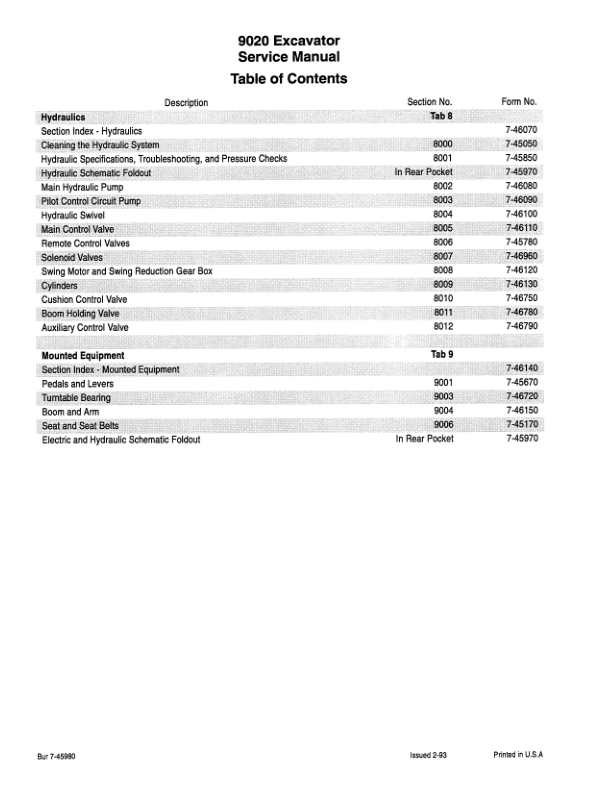 CASE 9020 Excavator Service Manual