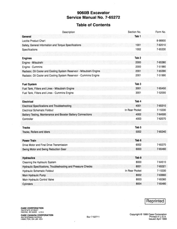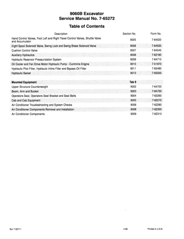CASE 9060B Excavator Service Manual