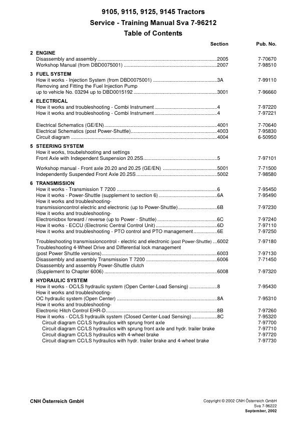 CASE 9105 915 9125 9145 Tractors Service Manual 7-96212