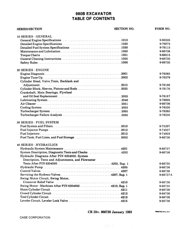 CASE 980B Excavator Service Manual