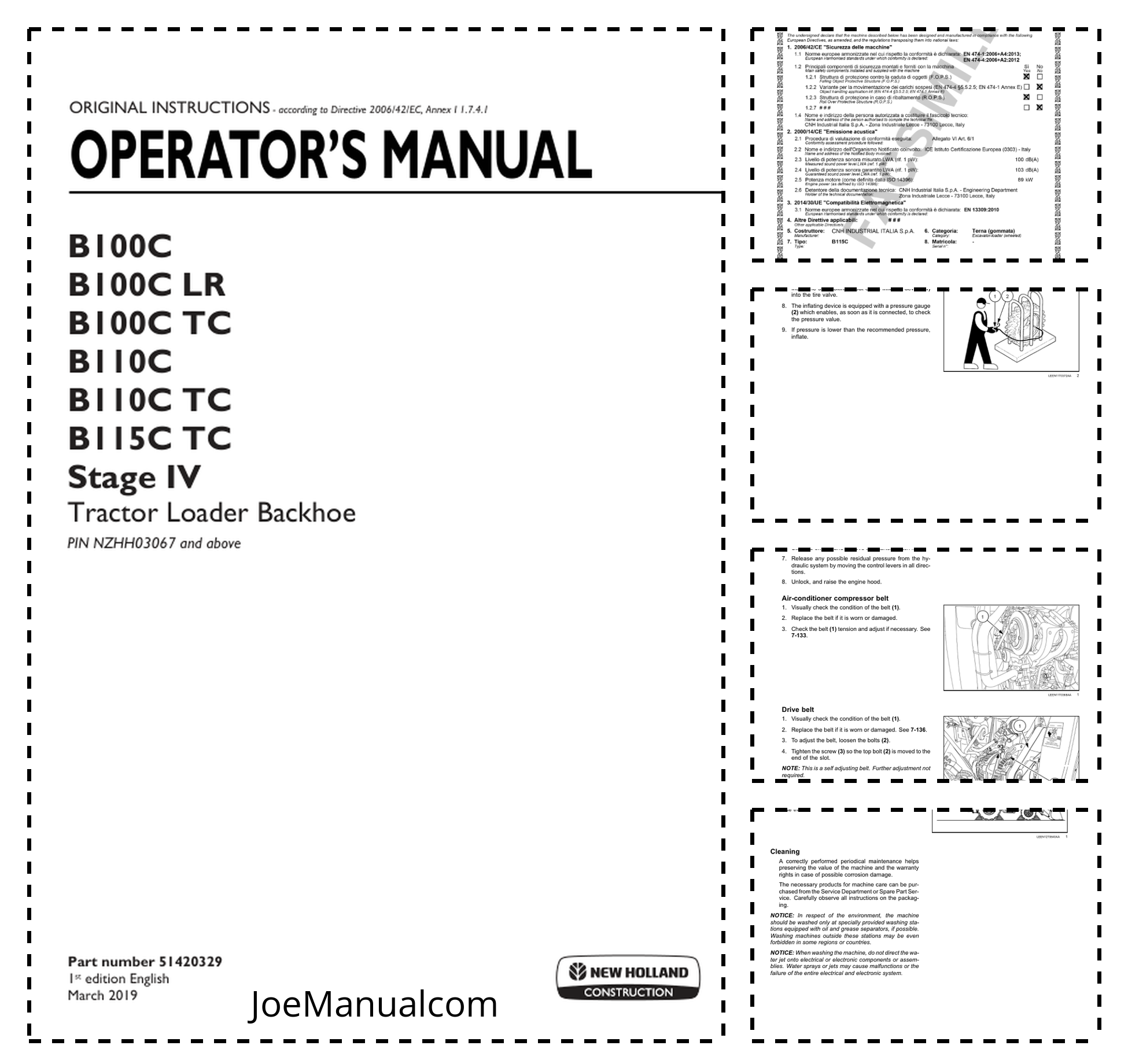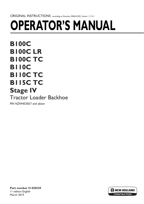 Case B100C B100C LR B100C TC B110C B110C TC B115C TC Tractor Loader Backhoe Operators Manual