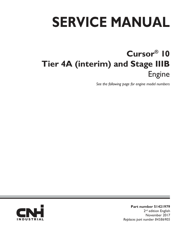 CASE Cursor 10 Tier 4A Stage IIIB Engine Service Manual 51421979