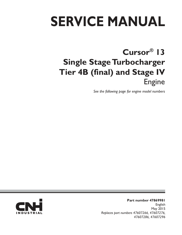 CASE Cursor 13 Single Stage Turbocharger Tier 4B Stage IV Engine Service Manual 47869981