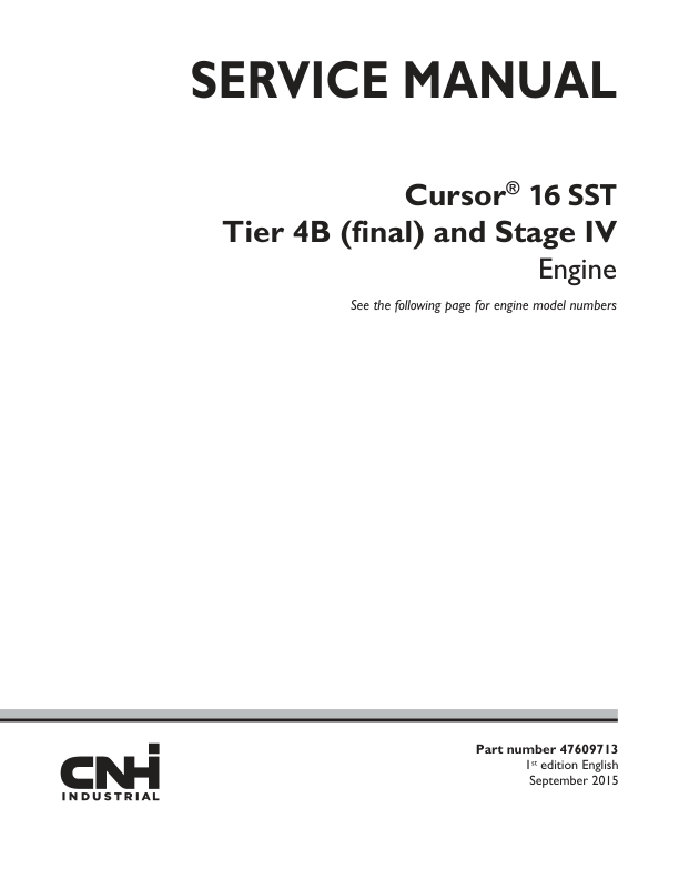 CASE Cursor 16 SST Tier 4B Final Stage IV Engine Service Manual