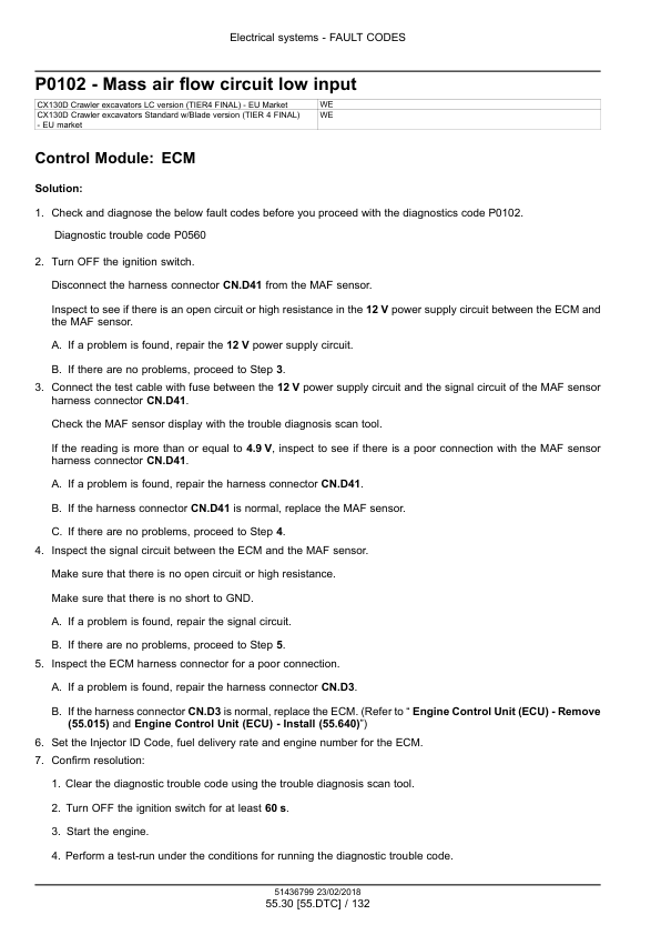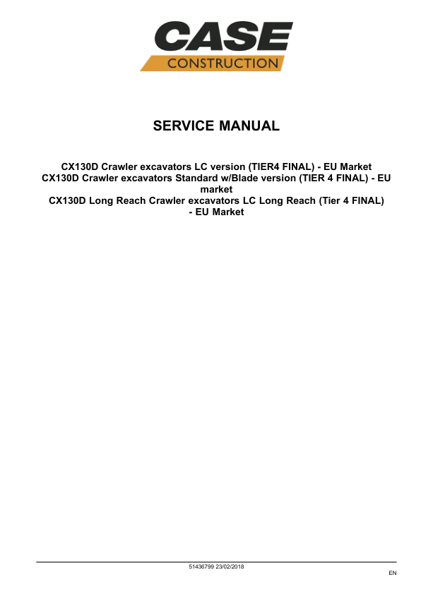 CASE CX130D LC Long Reach Tier 4 Crawler Excavator Service Manual 51436799 EU Market