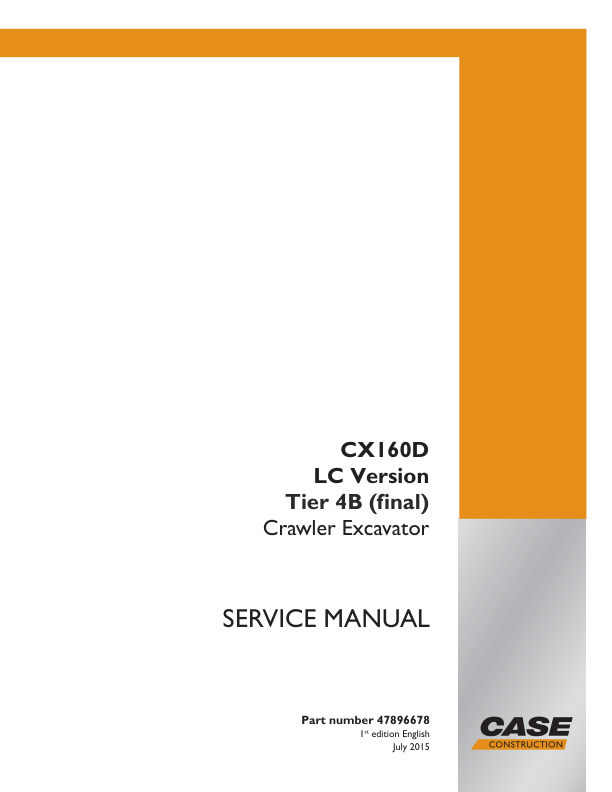 CASE CX160D LC Version Tier 4B Crawler Excavator Service Manual