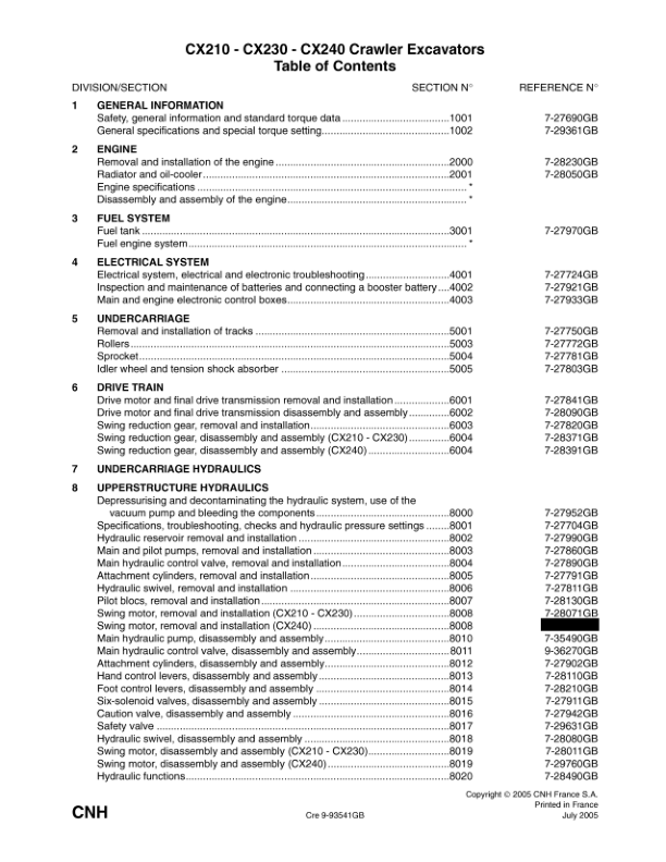CASE CX210 CX230 CX240 Excavators Service Manual is a comprehensive guide designed for professionals and DIY enthusiasts. This manual provides detailed instructions, diagrams, and specifications to assist in the maintenance, repair, and troubleshooting of CASE CX210, CX230, and CX240 excavators. It covers all major components, including the engine, hydraulic system, electrical system, and undercarriage, ensuring that users have the necessary information to keep their equipment running efficiently. Whether you’re a seasoned technician or a novice, this manual is an invaluable resource for maintaining the performance and longevity of your excavator.