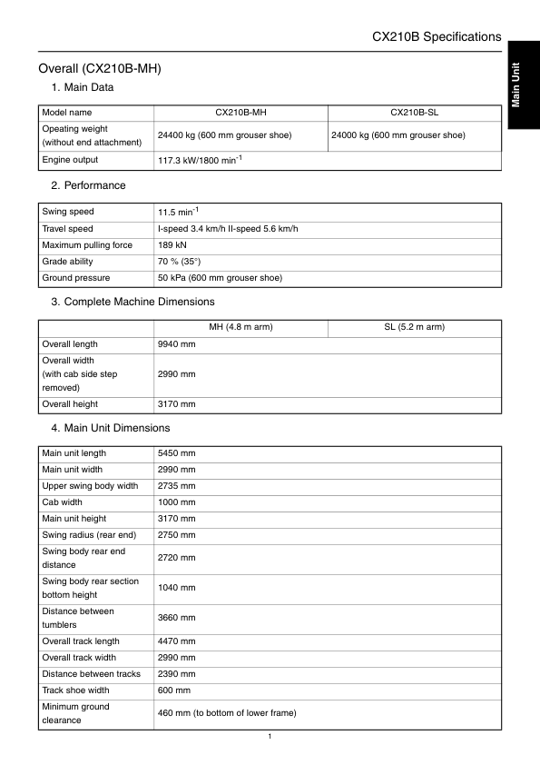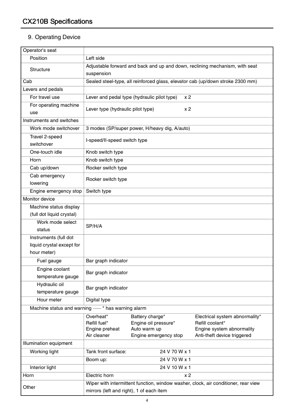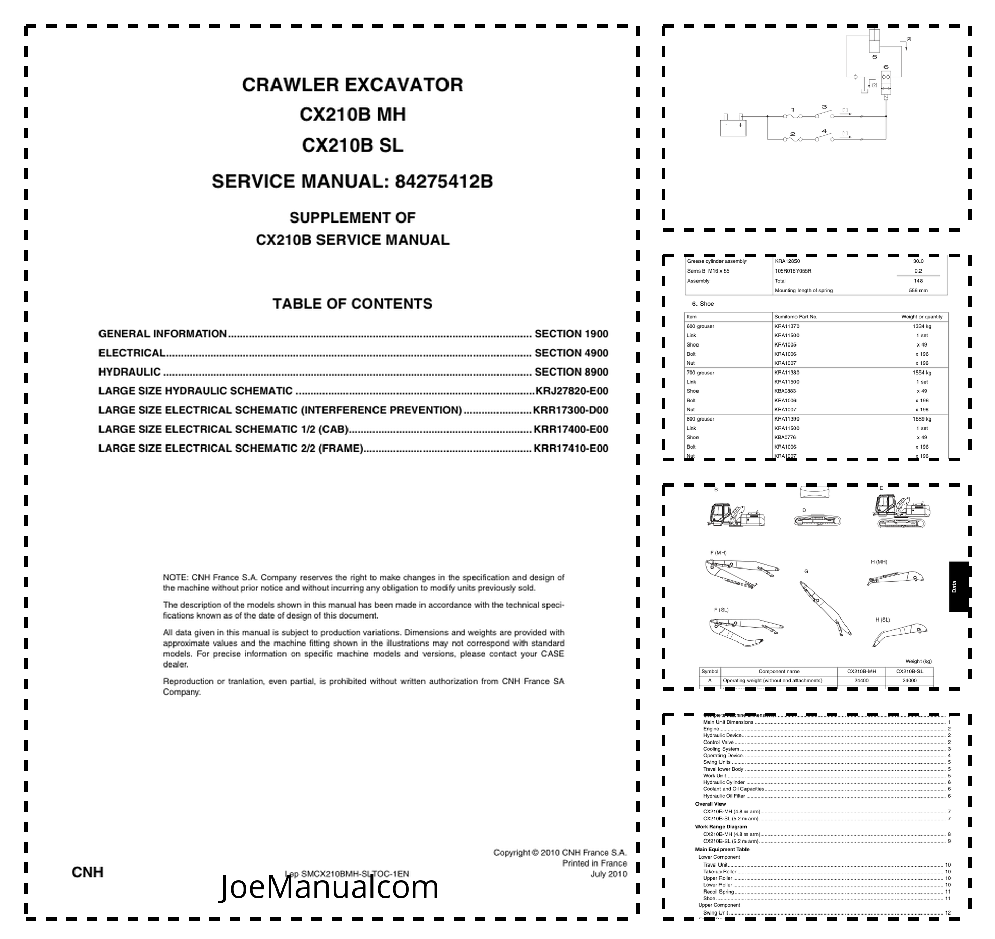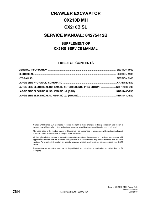 CASE CX210B MH CX210B SL Crawler Excavator Service Manual