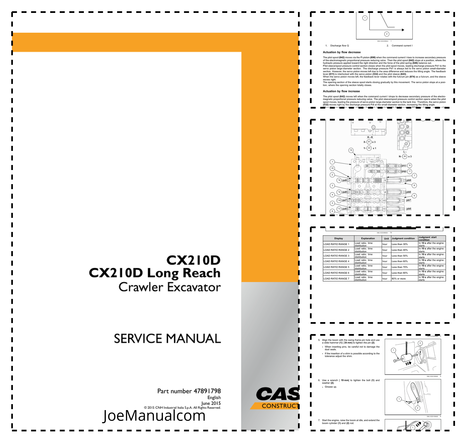 CASE CX210D Long Reach Crawler Excavator Service Manual 47891798 EU Market