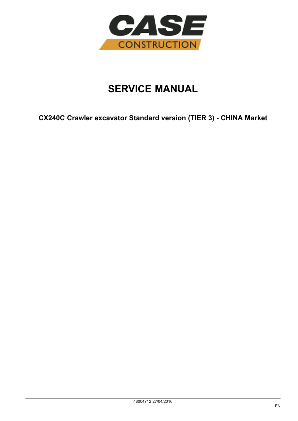 CASE CX240C Crawler Excavator Service Manual China Market