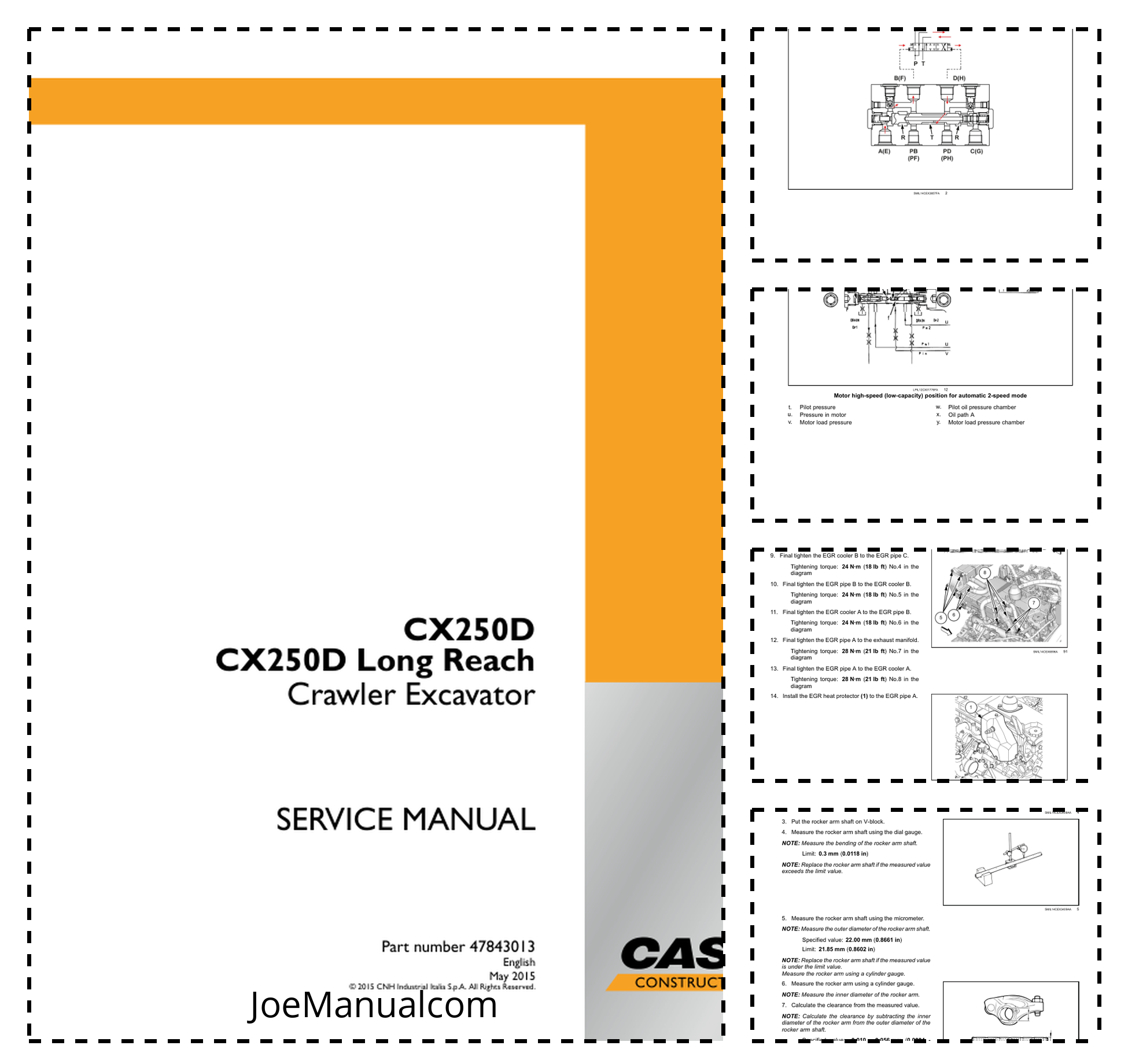 CASE CX250D Long Reach Crawler Excavator Service Manual EU Market