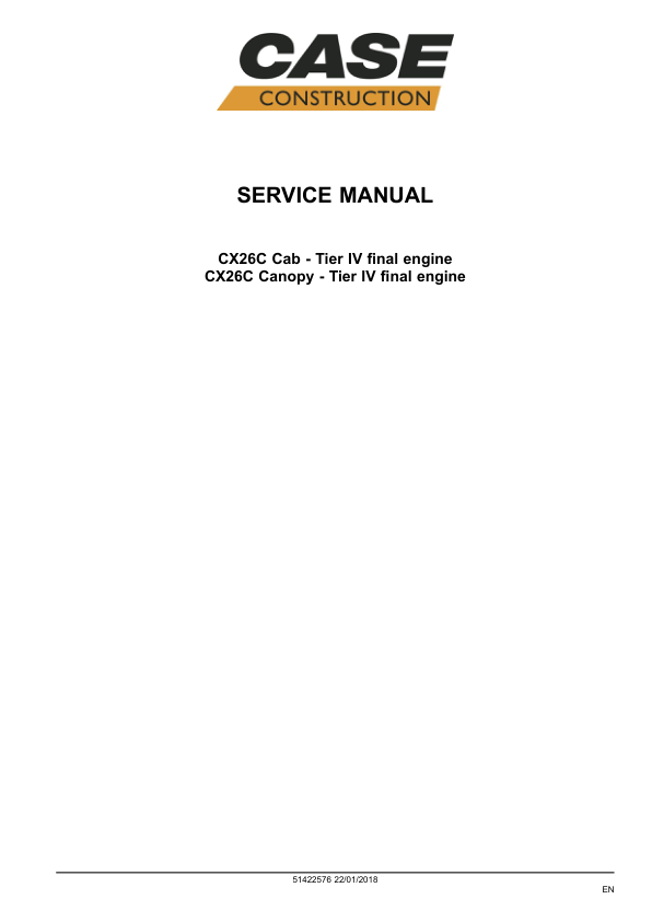 CASE CX26C Tier IV Crawler Excavator Service Manual 51422576