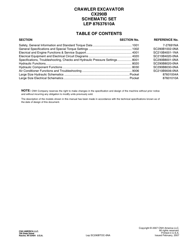 CASE CX290B Crawler Excavator Repair Manual 87637610NA
