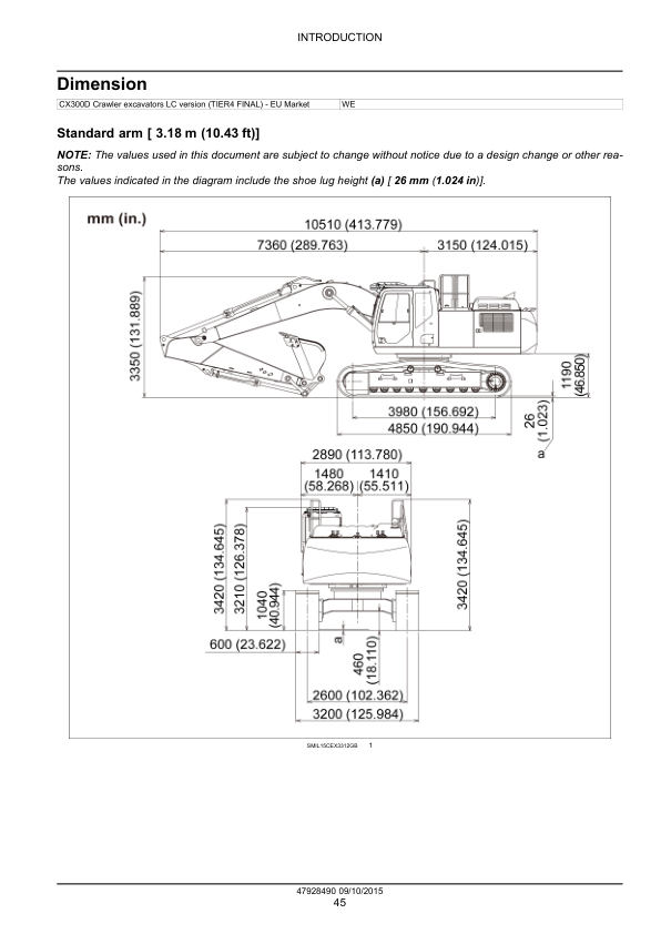 CX300D Crawler excavators LC version (TIER4 FINAL) – EU Market