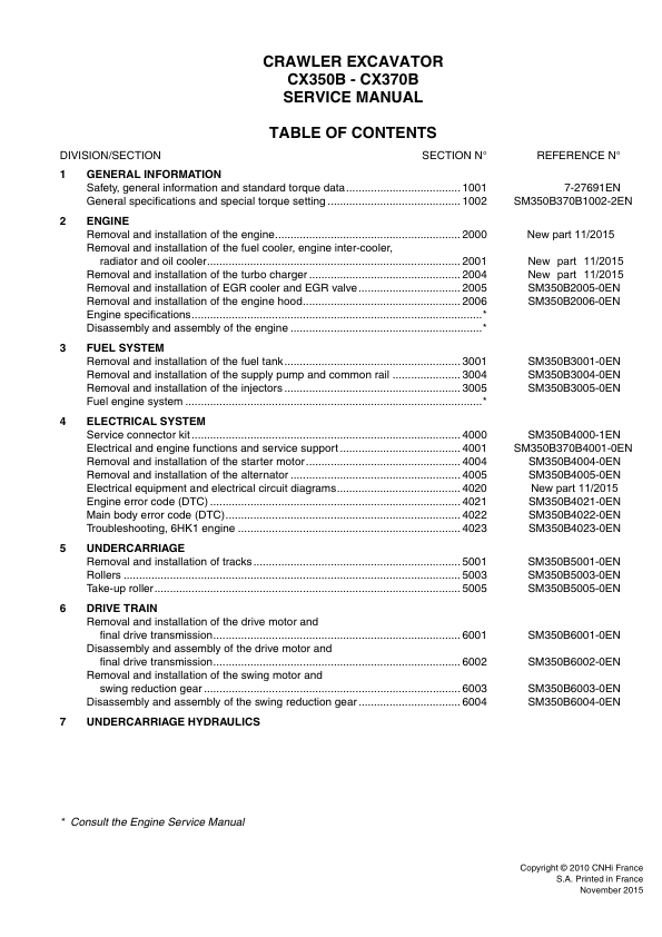 CASE CX350B CX370B Crawler Excavator Service Manual 47945155
