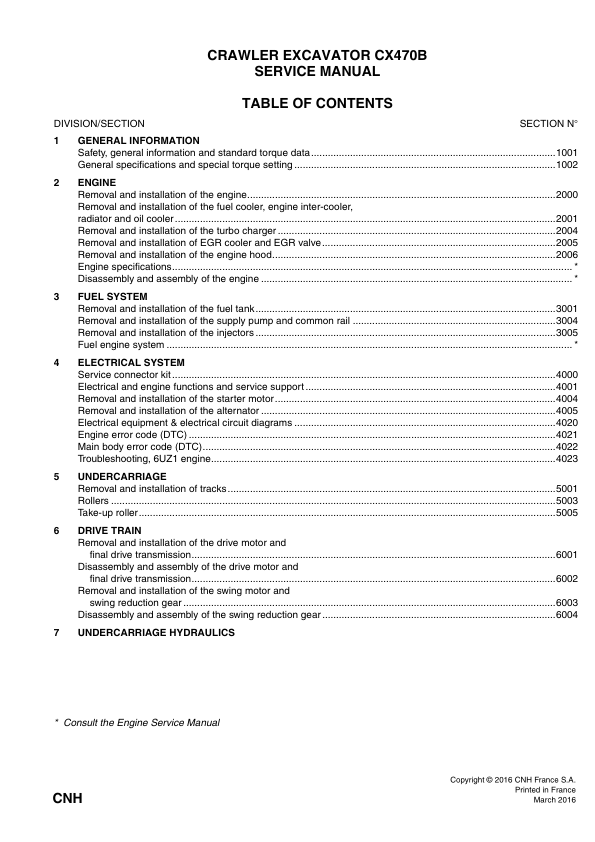 CASE CX470B Crawler Excavator Service Manual 48004716