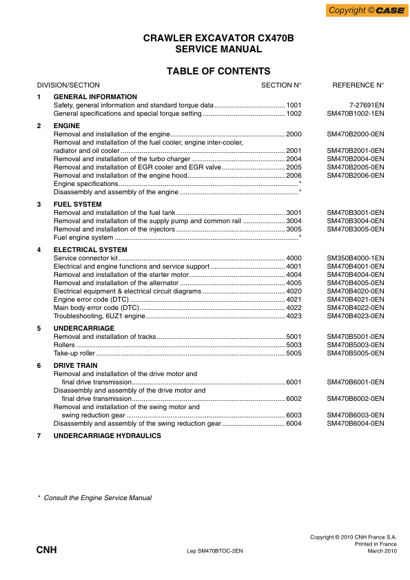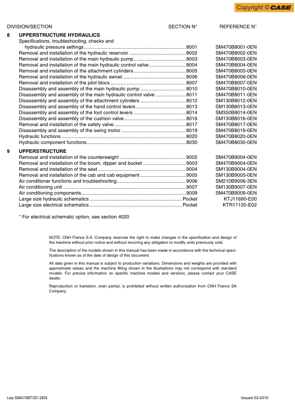 CASE CX470B Excavator Service Manual