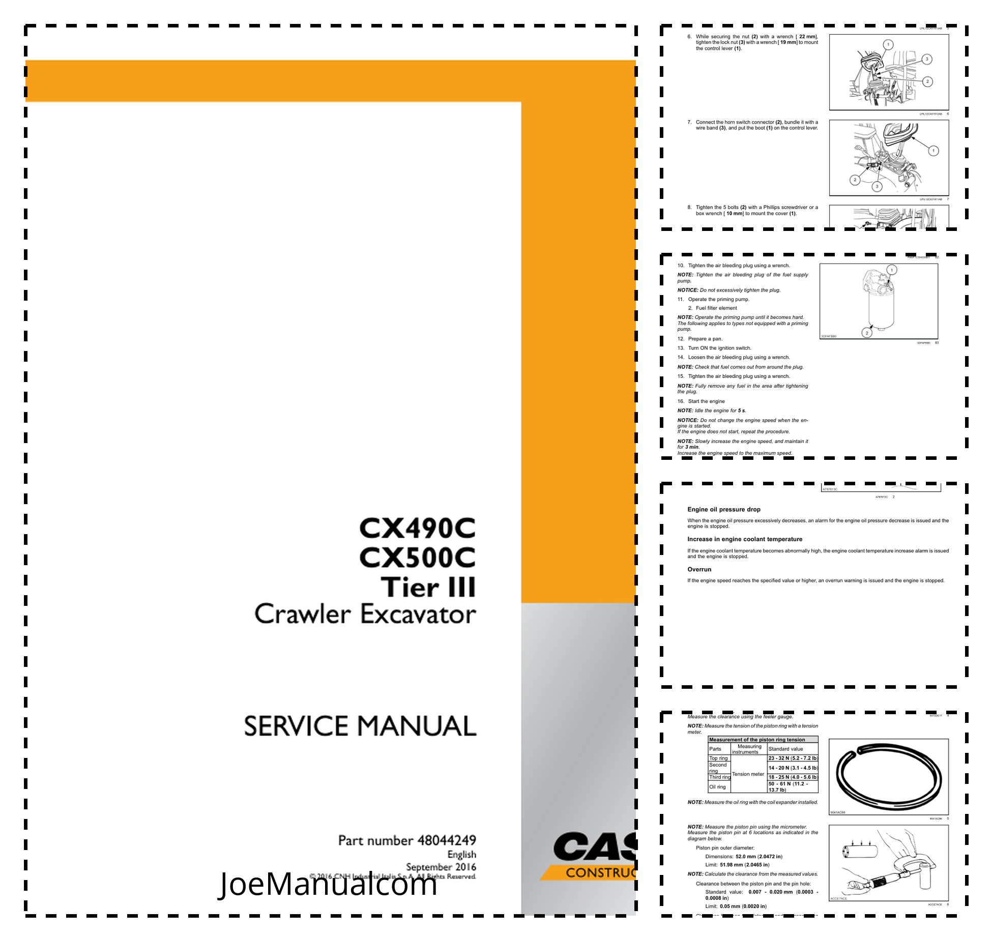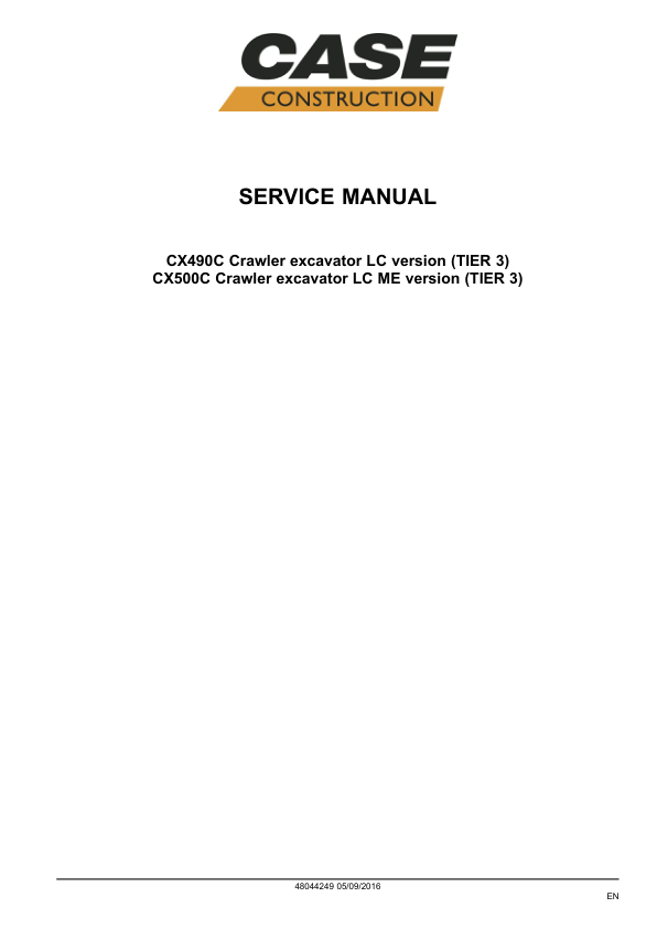 CASE CX490C CX500C Tier III Crawler Excavator Service Manual 48044249