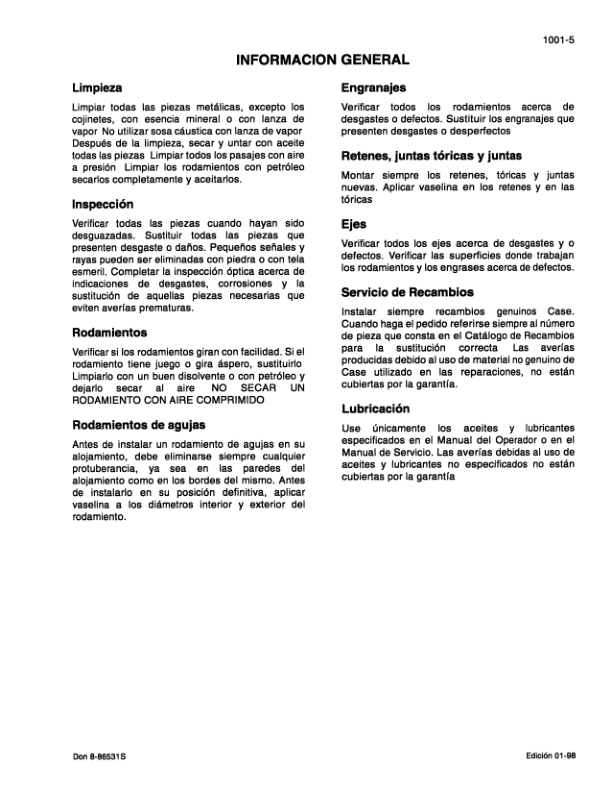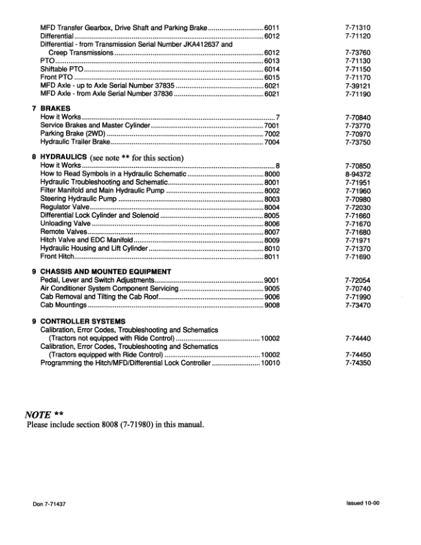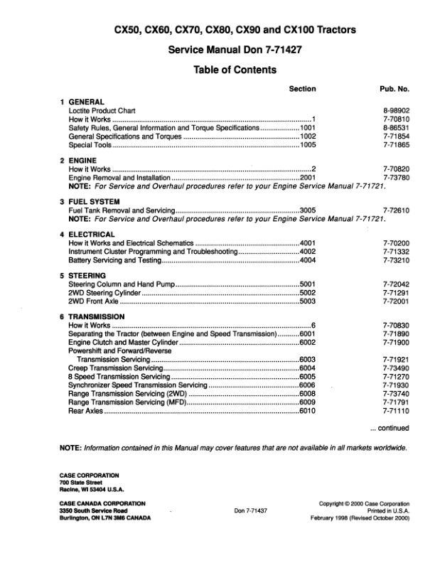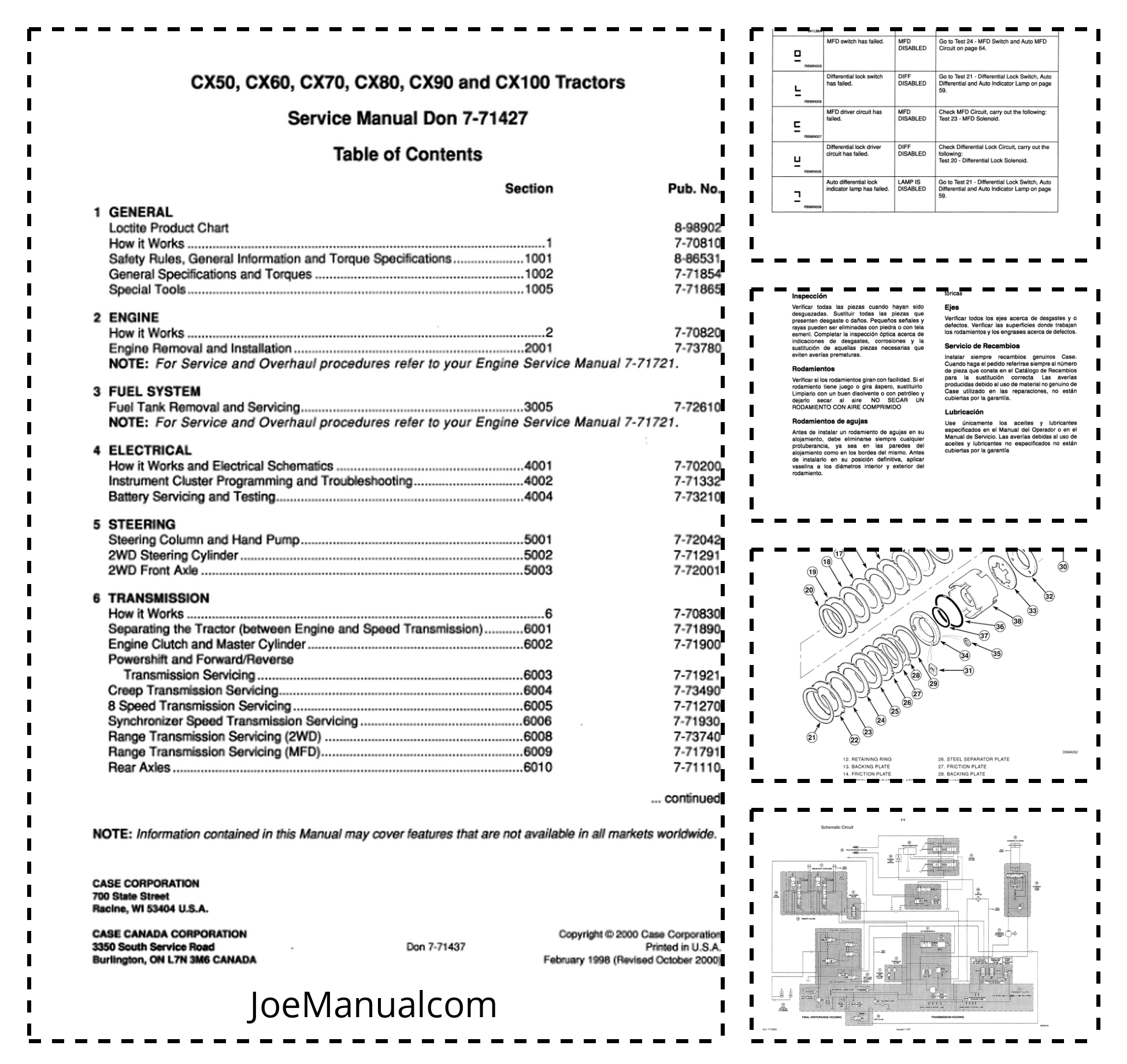 CASE CX50 CX60 CX70 CX80 CX100 Tractors Service Manual