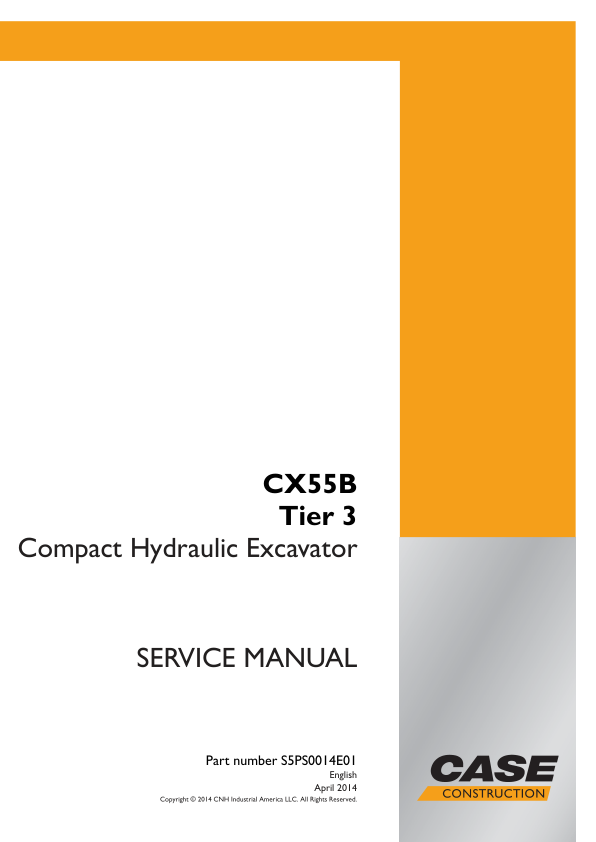 CASE CX55B Tier 3 Compact Hydraulic Excavator Service Manual S5PS0014E01