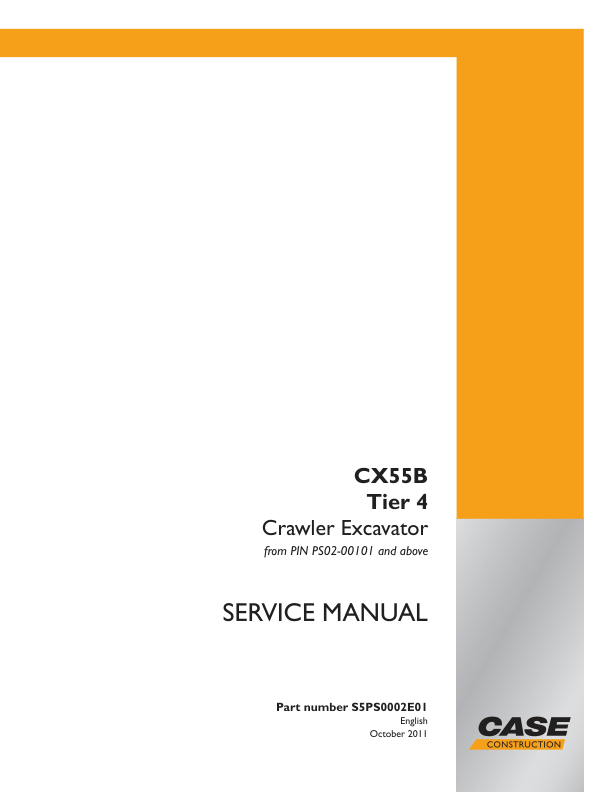 CASE CX55B Tier 4 Crawler Excavator Service Manual PIN PS02-00101 and Above