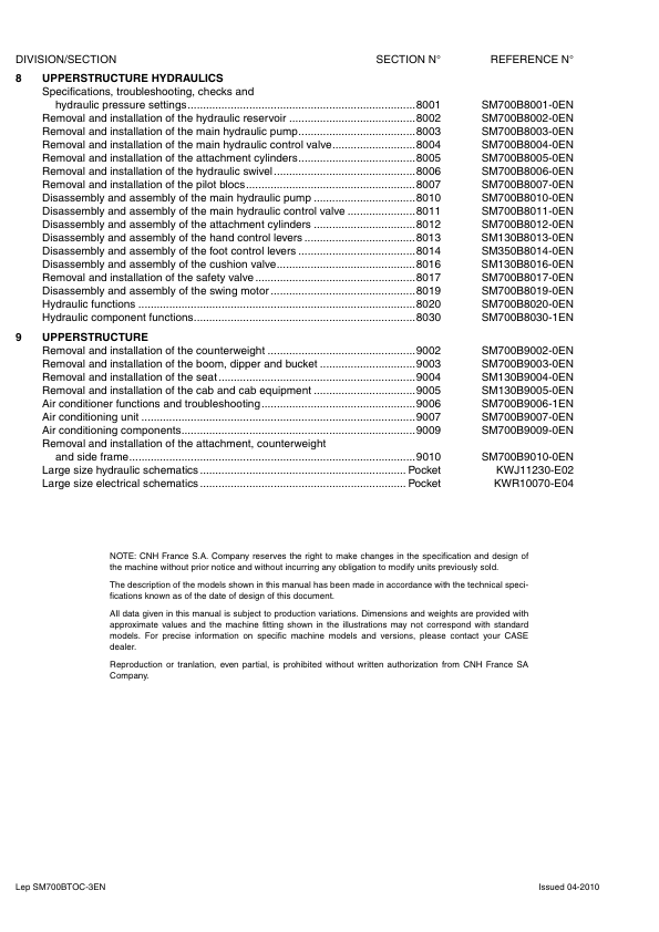 CASE CX700B Crawler Excavator Service Manual SM700BTOC-3EN