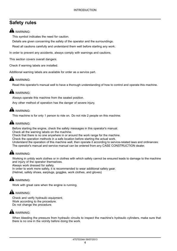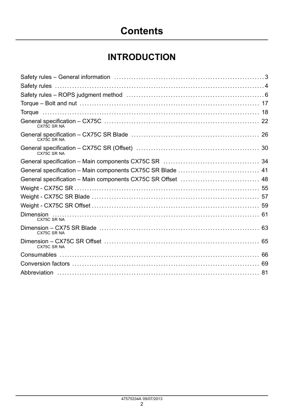 CASE CX75 C SR Excavator Service Manual 47575334 A The CASE CX75 C SR Excavator Service Manual 47575334 A is a comprehensive guide designed specifically for the maintenance and repair of the CASE CX75 C SR excavator. This manual provides detailed information on all aspects of servicing, including troubleshooting, diagnostics, and step-by-step repair procedures. It covers the entire range of mechanical, electrical, and hydraulic systems, ensuring that technicians and operators have the necessary resources to keep the excavator running efficiently. The manual is an essential tool for anyone responsible for the upkeep and performance of this heavy-duty equipment, offering clear instructions and illustrations to simplify complex tasks. Whether for routine maintenance or addressing specific issues, this service manual is a valuable asset for ensuring the longevity and optimal operation of the CASE CX75 C SR excavator.
