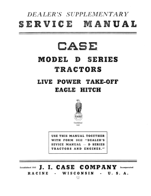 CASE D Series Tractors Live Power Take-Off Eagle Hitch Service Manual