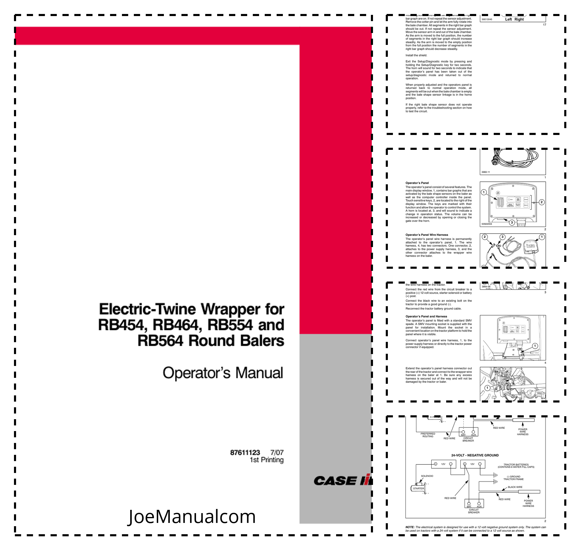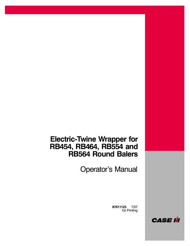 CASE Electric-Twine Wrapper for RB454 RB464 RB554 RB564 Round Balers Operators Manual 87611123 The CASE Electric-Twine Wrapper for RB454, RB464, RB554, and RB564 Round Balers Operator’s Manual 87611123 is a comprehensive guide designed to assist operators in the proper use and maintenance of their electric-twine wrapping systems. This manual provides detailed instructions on installation, operation, troubleshooting, and safety procedures to ensure optimal performance and longevity of the equipment. Whether you’re a seasoned operator or a beginner, this manual serves as an essential resource for getting the most out of your CASE round baler. It covers all critical aspects, from basic setup to advanced troubleshooting, making it an invaluable tool for efficient and safe operation.