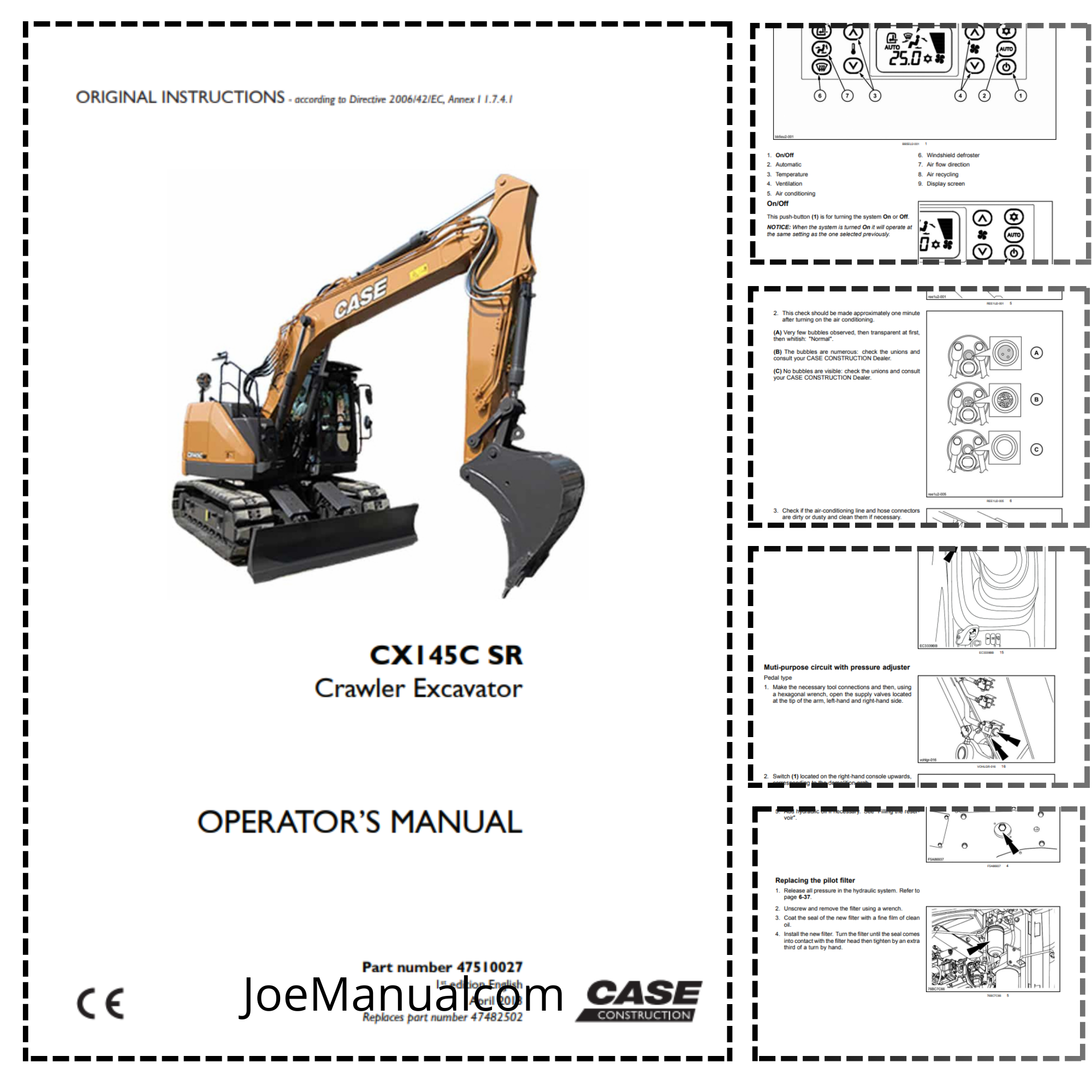 The CASE CX145C SR Excavator Operation and Maintenance Manual includes instructions for the safe operation, control, and basic maintenance of the excavator. It provides a maintenance schedule, diagnostic procedures, and troubleshooting for common issues. The manual details technical specifications, component descriptions, and guidelines for transport and storage. This document is essential for maintaining the machine’s optimal performance and ensuring operator safety.