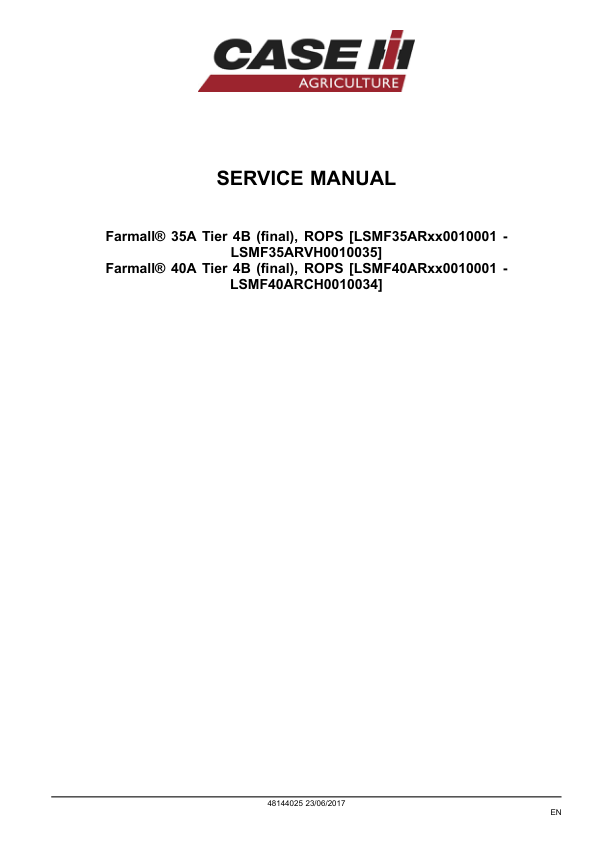 CASE Farmall 35A 40A Tier 4B Compact Tractor Service Manual LSMF