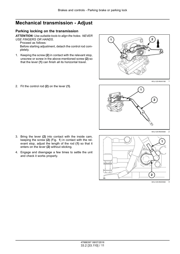 FARMALL® 105V with cab PIN ZBJF20562 and above; FARMALL® 105V without cab PIN ZDJF09419 and above