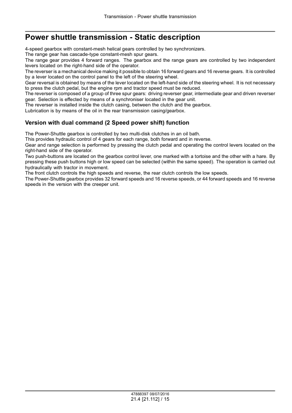FARMALL® 105N with cab PIN ZBJF20417 and above; FARMALL® 105N without cab PIN ZCJF16900 and above;