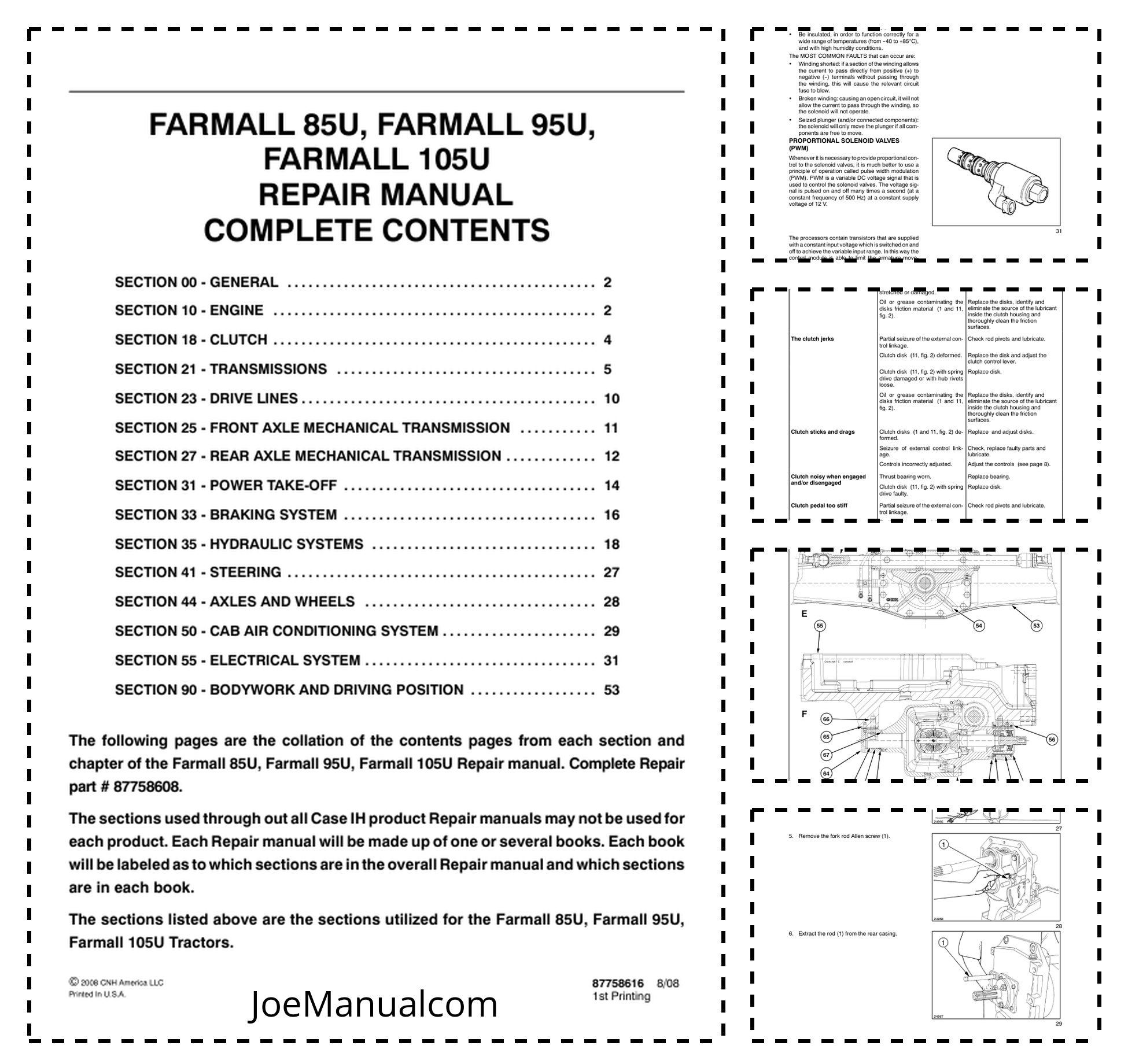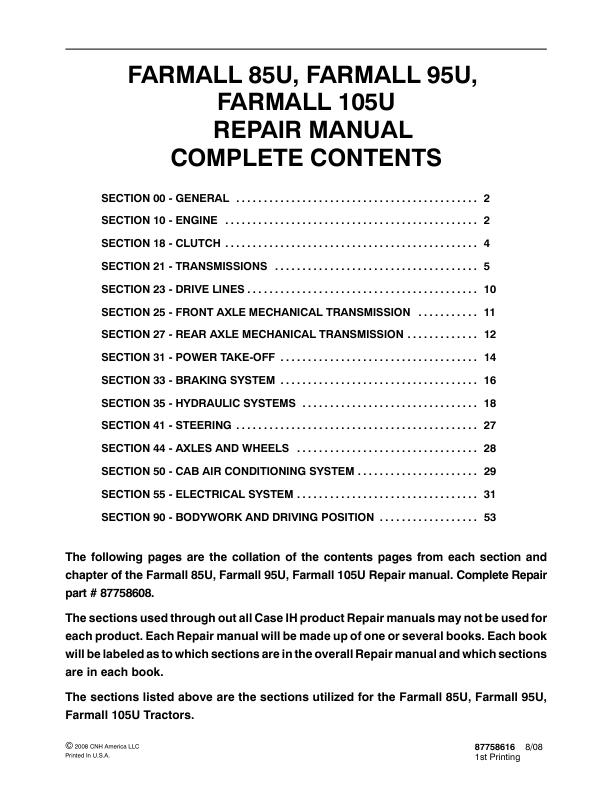 CASE Farmall 85U 95U 105U Tractor Repair Manual