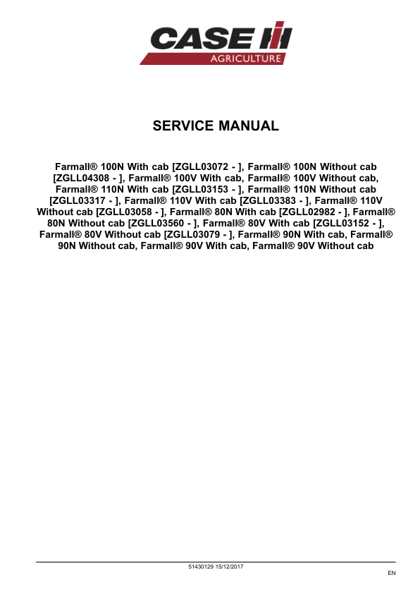 CASE Farmall N and V Series Tier 4A Tractor Service Manual NA