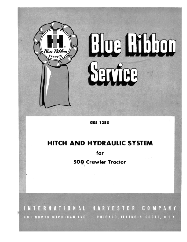 CASE Hitch and Hydraulic System for 500 Crawler Tractor Service Manual GSS-1380